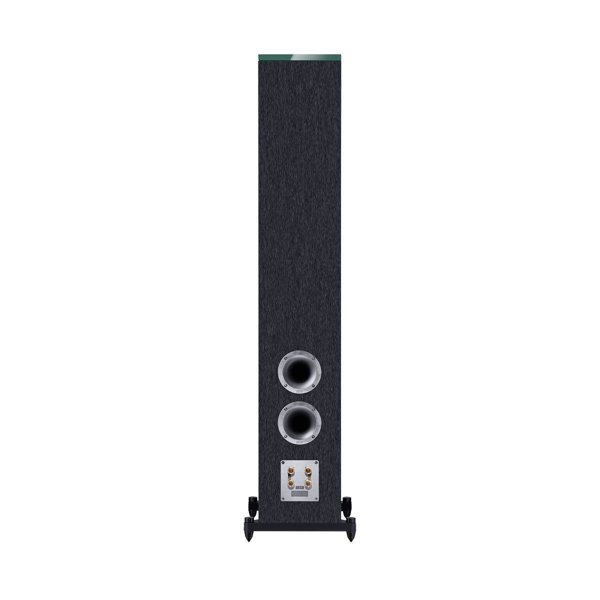 The Heco Aurora 700 Colors is a fully-fledged floorstanding speaker with 3-way technology. It is available in four exclusive colors, namely: Cranberry Red, Speed Green, Sunrise Orange and Cool Grey. The body is finished in silk-matt anthracite, while the baffle and top panel exhibit a high-gloss finish in the respective color. The textile front grille is magnetically attached without any visible mounts.